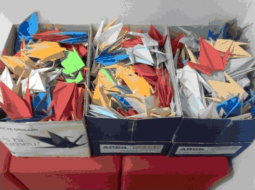 Además, los participantes hicieron tsuru (grúas de papiroflexia) y pudieron escribir mensajes de ánimo para las víctimas. Inicialmente los senbazuru (1.000 grúas) se colgaron en un centro de acogida provisional de Sendai (Miyagi). Después se trasladaron a un centro social de una zona de viviendas provisionales de la ciudad de Ishinomaki, donde todavía cuelgan en la actualidad.